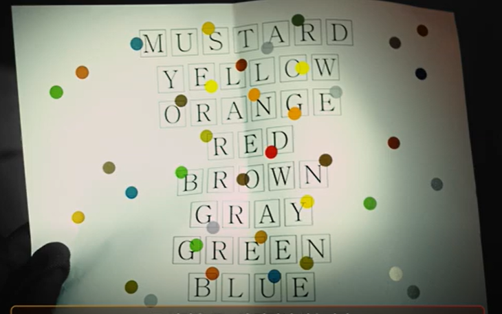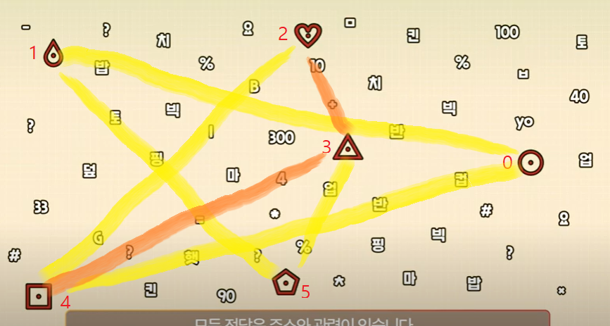 첫번째줄 MUSTARD 이므로 머스타드색이 있는 알파벳을 고른다 -> S